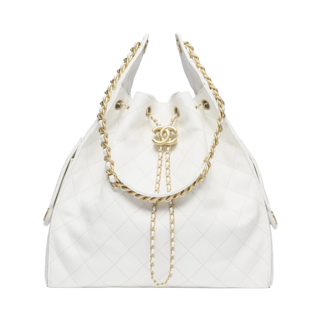 Material: Luxurious grained calfskin leather Hardware: Gold-tone metal detailing Color: Classic white – refined and...