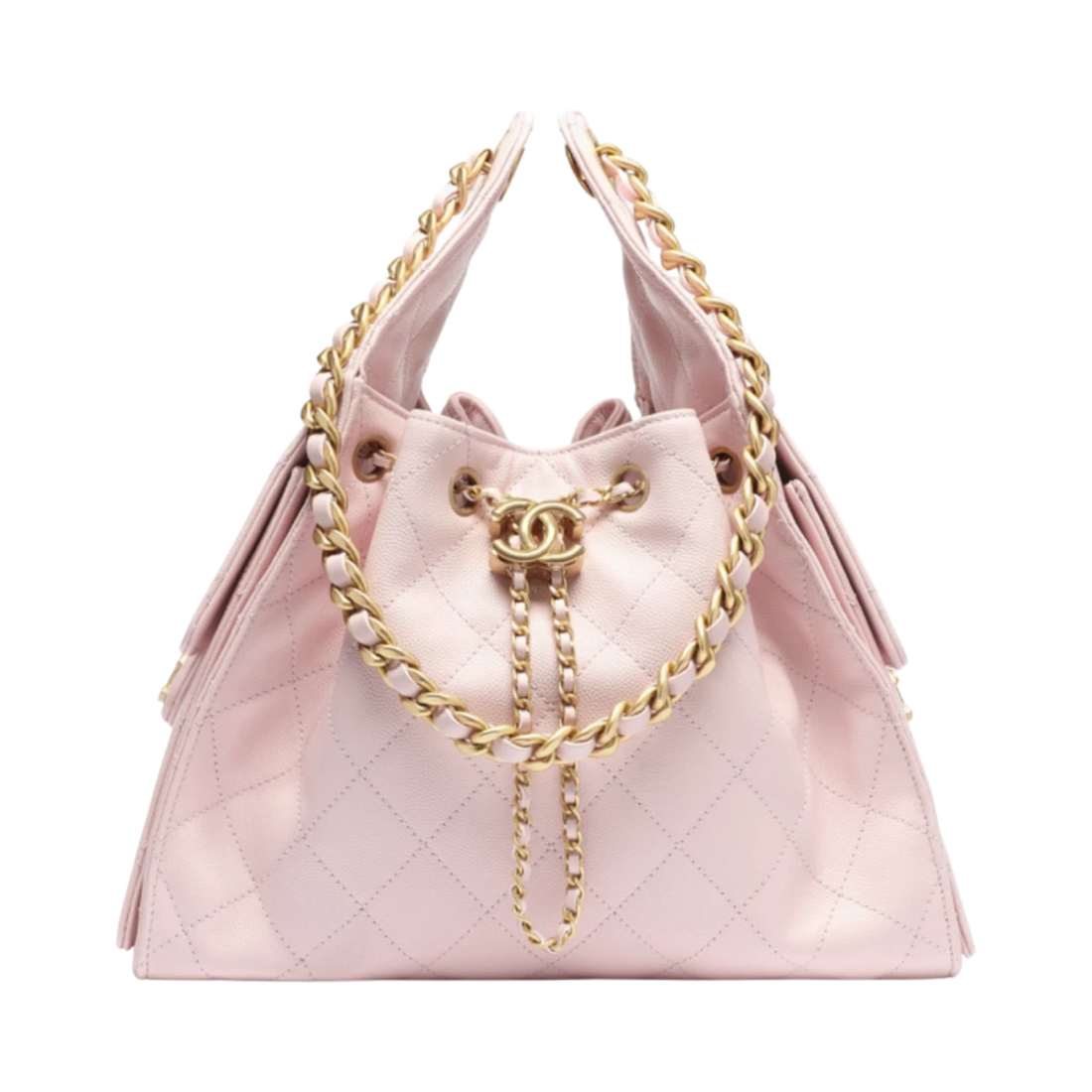 Material: Premium grained calfskin leather Hardware: Shiny gold-tone metal details Color: Elegant light pink –...