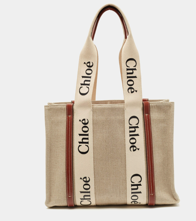 •Tote bag in linen canvas & shiny calfskin with Chloé logo•Main material: Linen•Secondary material: Calfskin•Trim:...