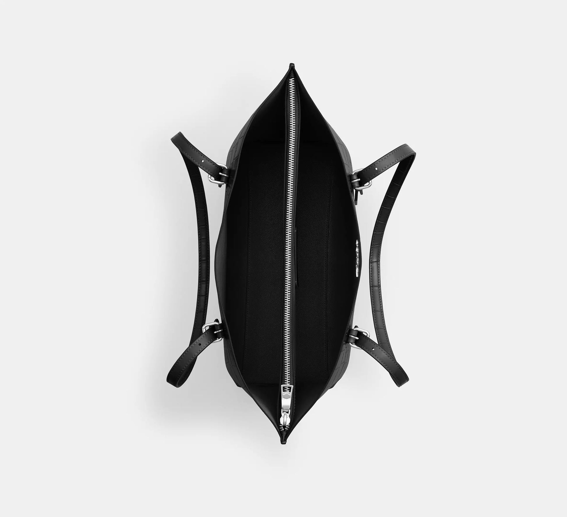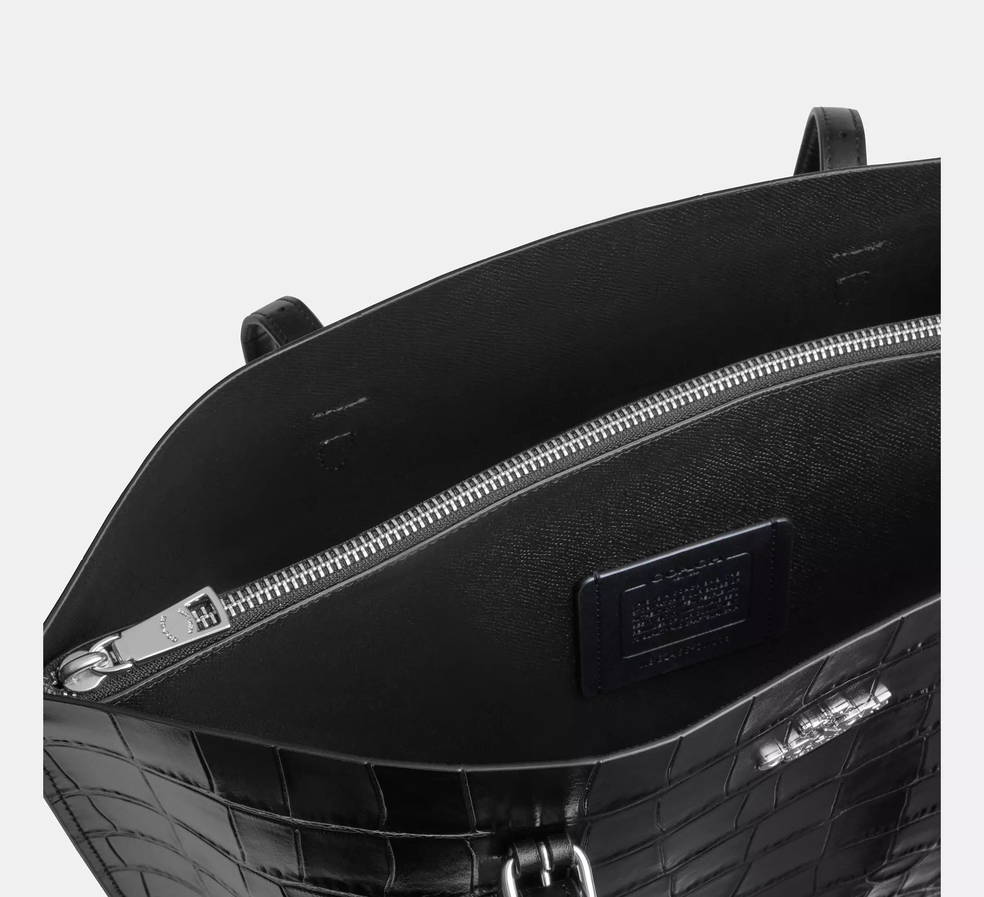 The Coach Mollie Tote Bag is a sleek blend of modern sophistication and classic structure. Crafted from luxurious crocodile-embossed leather paired with smooth accents, it exudes quiet elegance and everyday functionality. With a spacious interior and refined silhouette, this tote transitions effortlessly from daytime errands to evening sophistication.