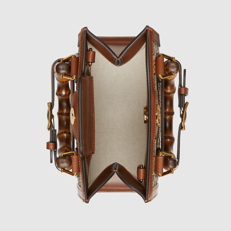 The Gucci Diana Mini GG Canvas Tote Bag is a modern reinterpretation of an iconic classic. Crafted in signature GG Supreme canvas and detailed with bamboo top handles, this bag blends heritage design with contemporary elegance — a timeless symbol of Gucci sophistication.