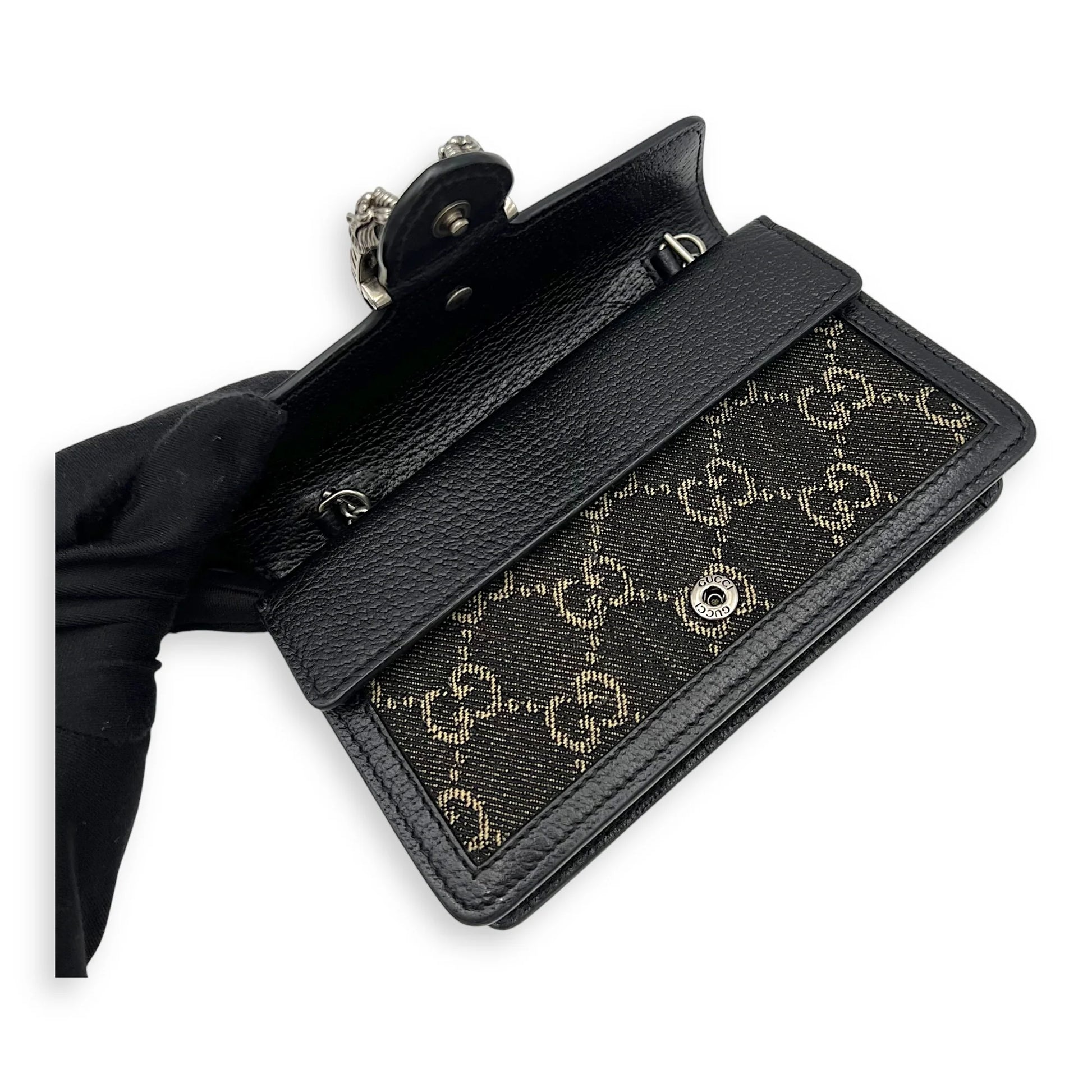 Gucci Dionysus Super Mini Black Crossbody Bag in Canvas, Silver hardware