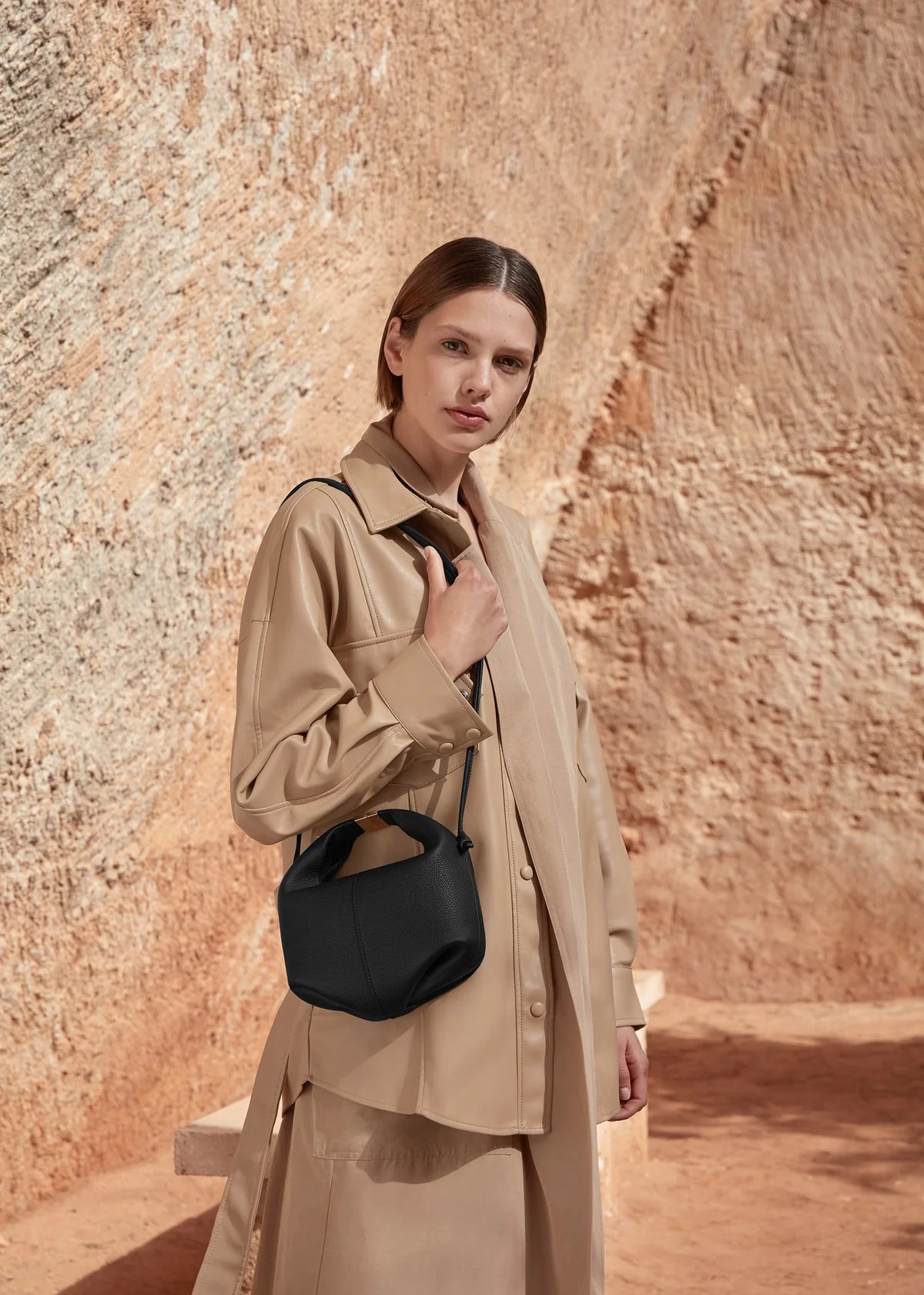 - Hand-knotted shoulder strap.